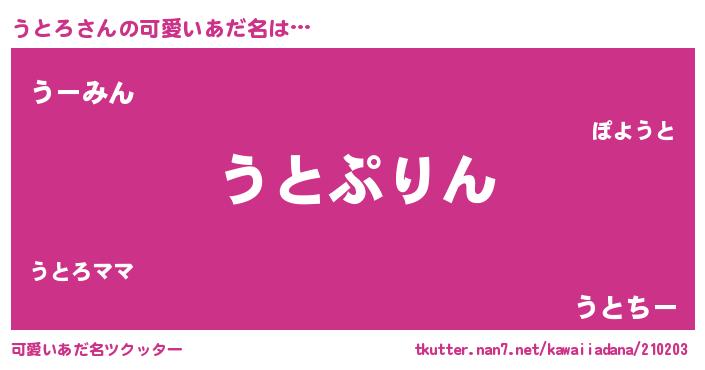 | 意味不明あだ名 | 『なめこ科うとろ属』『永久保存うとろ』 |