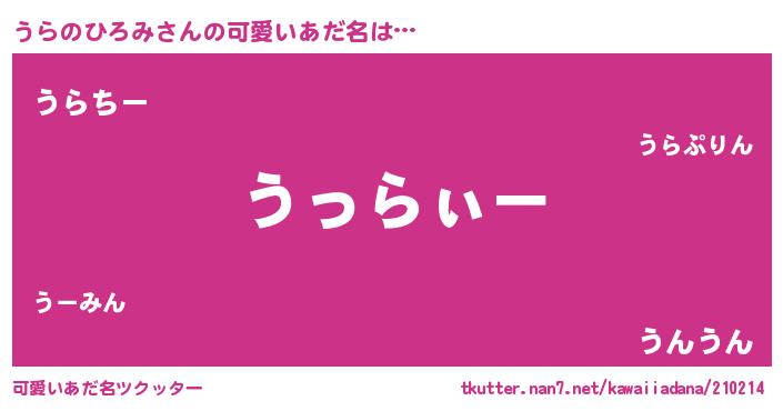 | 意味不明あだ名 | 『とにかく怪しいうらのひろみ』 |