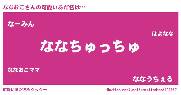 | ヘコむあだ名 | 『ななおこ(爆)』『ななお』『豆乳』 |