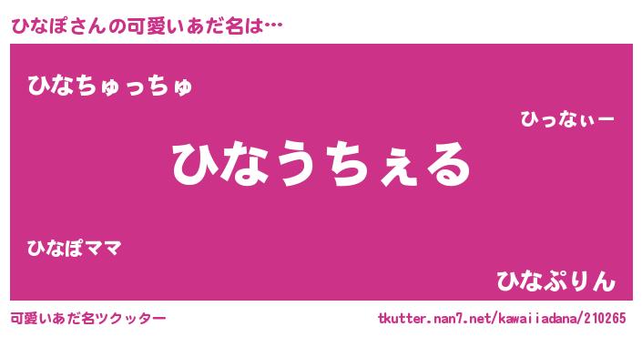 | ヘコむあだ名 | 『ひなっちょ』『ひなぽ(苦笑)』 |