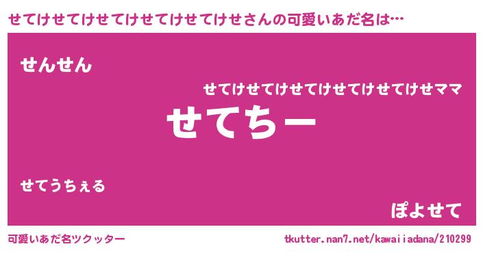 | ヘコむあだ名 | 『豆乳』『せてっふぃ~』『せてお』 |