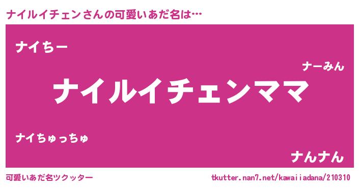 | 男性向けラノベタイトル風あだ名 | 『ナイルイチェンという概念が存在しない退屈な世界 』 |