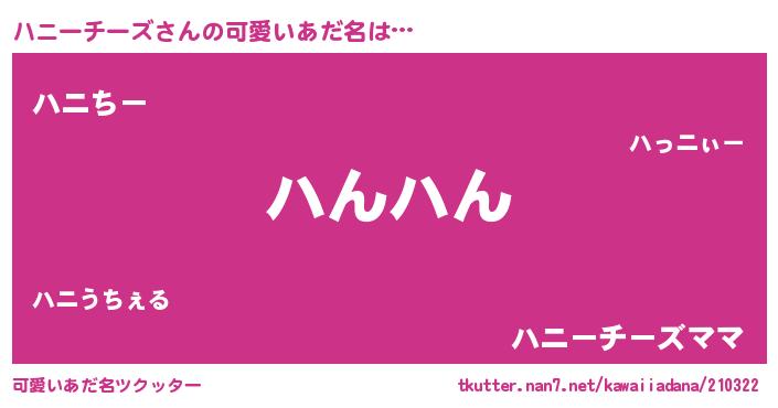 | ヒーロー風カッコイイあだ名 | 『スーパーハニーチーズ』『黄金騎士ハニ』 |