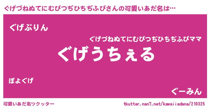| 意味不明あだ名 | 『自称ぐげづねぬてにむぴつぢひちぢふぴ』 |
