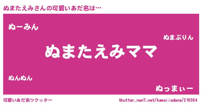 | 意味不明あだ名 | 『永久保存ぬまたえみ』 |