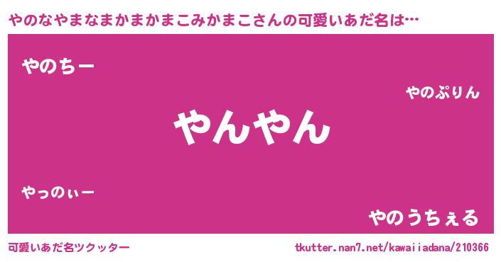 | 男性向けラノベタイトル風あだ名 | 『ヤノナヤマナマカマカマコミカマコアートオンライン』 |