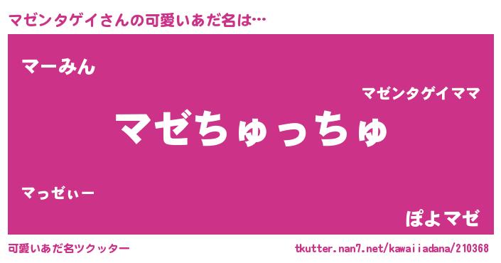| ヘコむあだ名 | 『マゼンタゲイ(遠い目)』『マゼっちょ』 |
