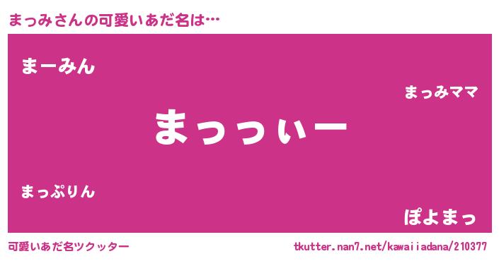 | 胡散臭い通販商品みたいなあだ名 | 『信頼と実績のサプリメント…その名も「まっみ」』 |