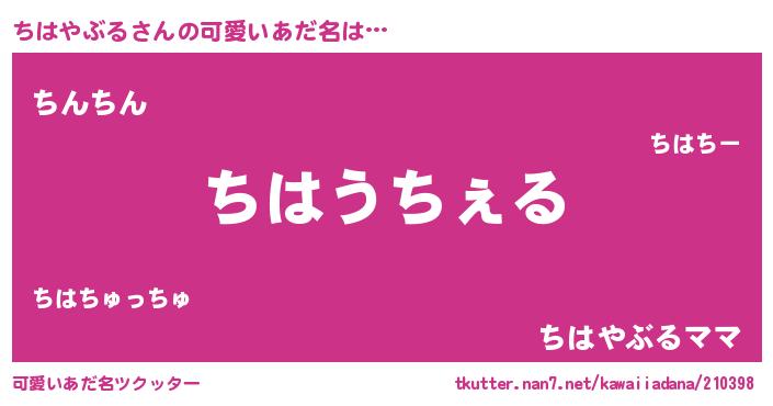 | 意味不明あだ名 | 『自称ちはやぶる』『ペロリンちはやぶる』 |