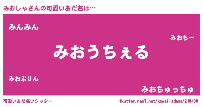 | ヘコむあだ名 | 『みおにー』『豆乳』『みおぷりん』 |