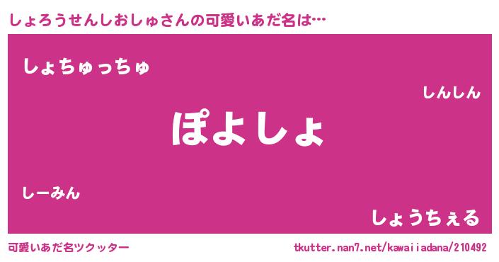 | ヘコむあだ名 | 『しょにー』『牛乳』『しょを』 |