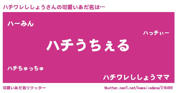 | ヘコむあだ名 | 『ハチワレししょう(爆)』『ハチお』 |