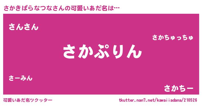 | 男性向けラノベタイトル風あだ名 | 『サカキバラナツナスレイヤー』 |