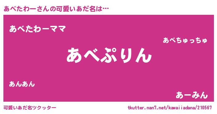 | ヘコむあだ名 | 『あべたわー(小並感)』『あべもー』 |