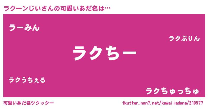 | 女子向けラノベタイトル風あだ名 | 『ラクーンじいの雑貨屋さん』 |