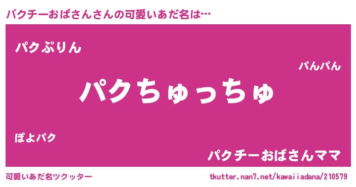 | ヘコむあだ名 | 『パクチーおばさん(爆)』『パクにゅー』 |