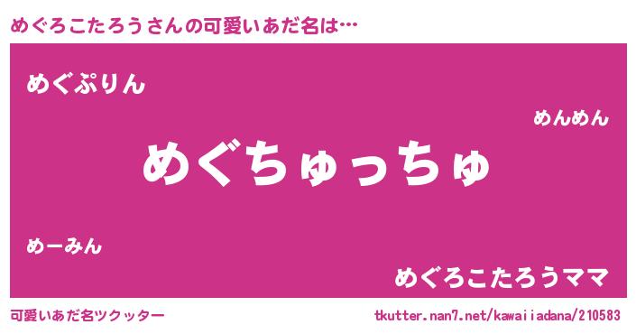 | ヘコむあだ名 | 『めぐろこたろう(笑)』『めぐにゅー』 |