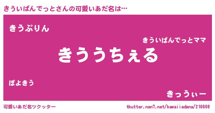 | 男性向けラノベタイトル風あだ名 | 『Re:きういばんでっとから始める異世界生活』 |