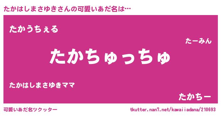 | 男性向けラノベタイトル風あだ名 | 『おまえをオタクにしてやるから、俺をたかはしまさゆきにしてくれ! 』 |