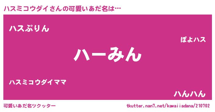 | 男性向けラノベタイトル風あだ名 | 『ハスミコウダイに滅ぼされるだけの簡単なお仕事です』 |