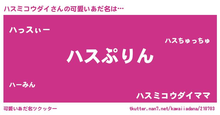 | 恥ずかしいあだ名 | 『ハスリンリン』『ハスちん』 |