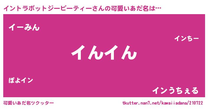 | ヒーロー風カッコイイあだ名 | 『スーパーイントラボットジーピーティー』 |