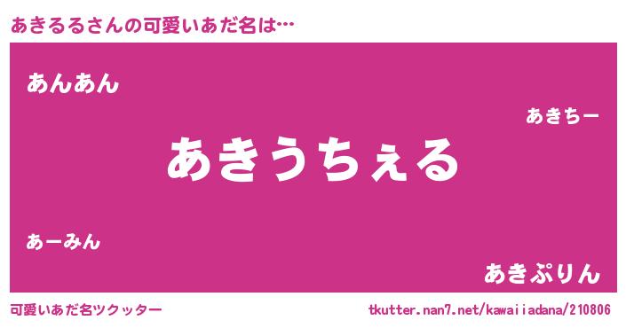 | 女子向けラノベタイトル風あだ名 | 『闇のあきるる』『あきるるの雑貨屋さん』 |
