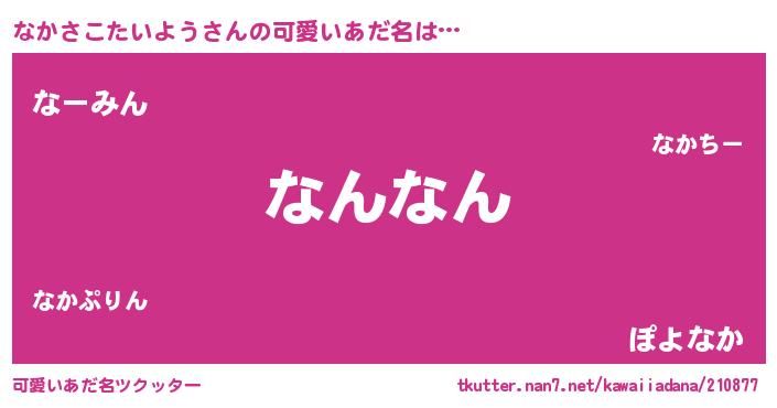 | 男性向けラノベタイトル風あだ名 | 『なかさこたいように滅ぼされるだけの簡単なお仕事です』 |