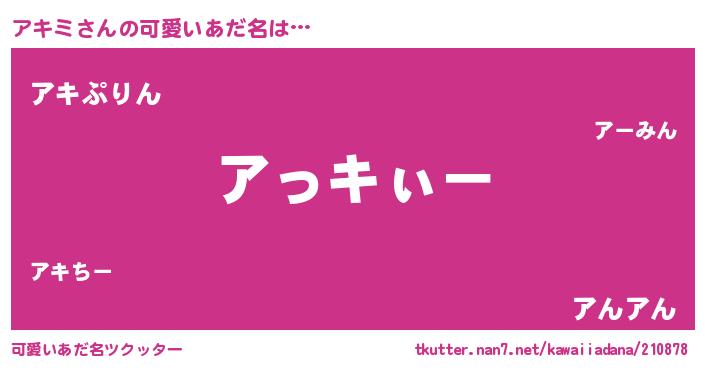 | 男性向けラノベタイトル風あだ名 | 『アキミの嫁は女の子じゃないと思った?』 |