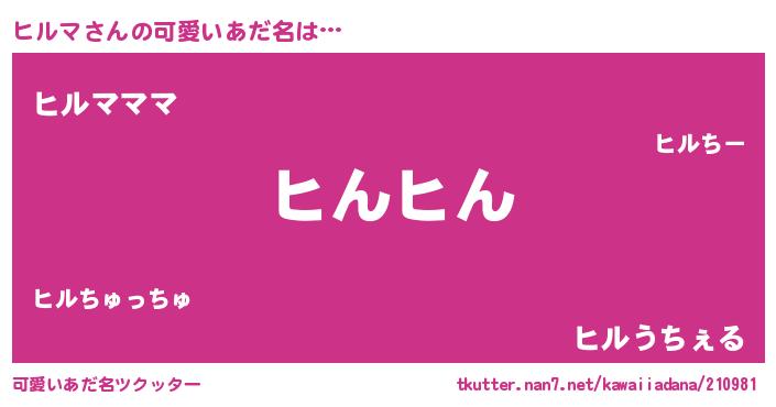 | 意味不明あだ名 | 『ペロリンヒルマ』『永久保存ヒルマ』 |