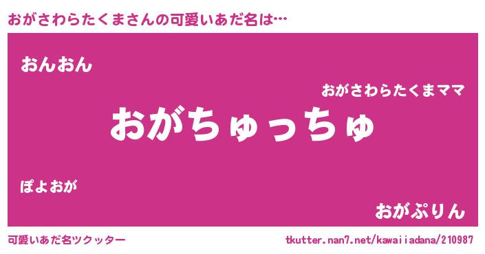 | ヘコむあだ名 | 『おがにゅー』『おがさわらたくま(震え声)』 |