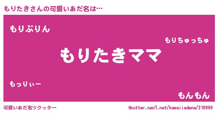 | ヘコむあだ名 | 『もりたき(笑)』『もりっふぃ~』 |