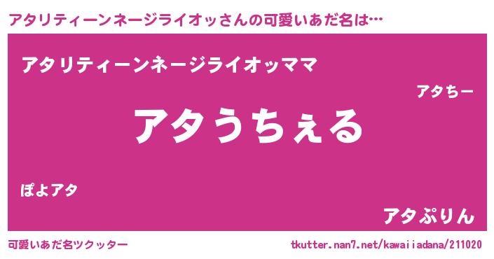 | 女子向けラノベタイトル風あだ名 | 『アタリティーンネージライオッアンティーク』 |