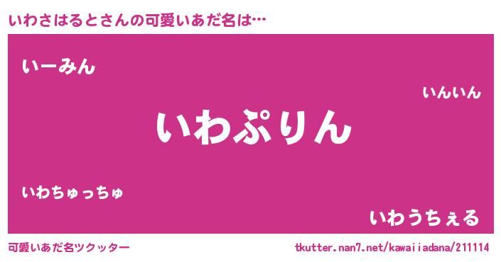| 女子向けラノベタイトル風あだ名 | 『いわさはるとの玉の輿計画!』 |