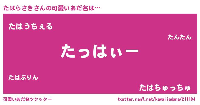 | 恥ずかしいあだ名 | 『タハリンリン』『タハラサキデラックス』 |