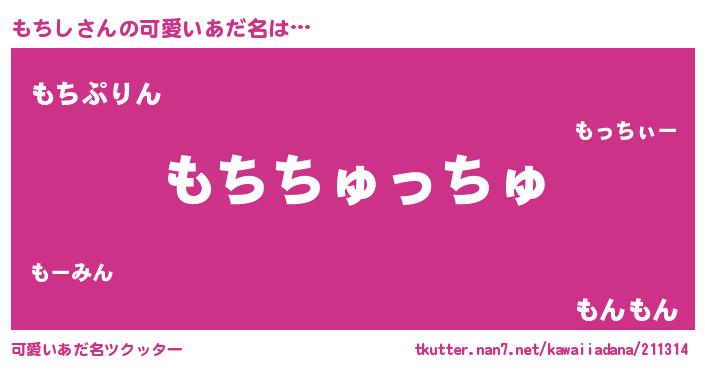 | ヒーロー風カッコイイあだ名 | 『慈愛の使者もちし』『スーパーモチシ』 |