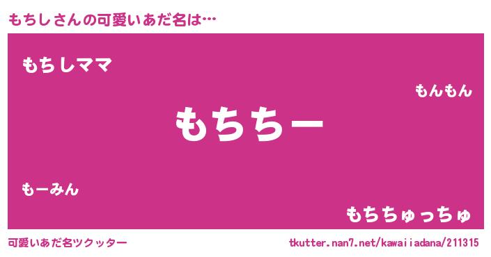 | 女子向けラノベタイトル風あだ名 | 『もちしの婚約者』『もちし恋絵巻』 |