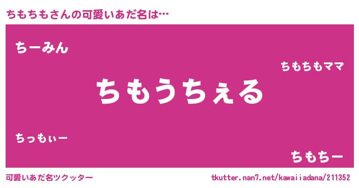 | 男性向けラノベタイトル風あだ名 | 『Re:ちもちもから始める異世界生活』 |