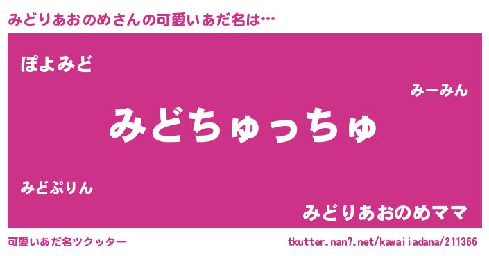 | ヘコむあだ名 | 『みどりあおのめ(苦笑)』『みどにゅー』 |