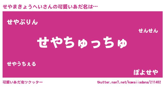 | ヒーロー風カッコイイあだ名 | 『慈愛の使者せやまきょうへい』 |