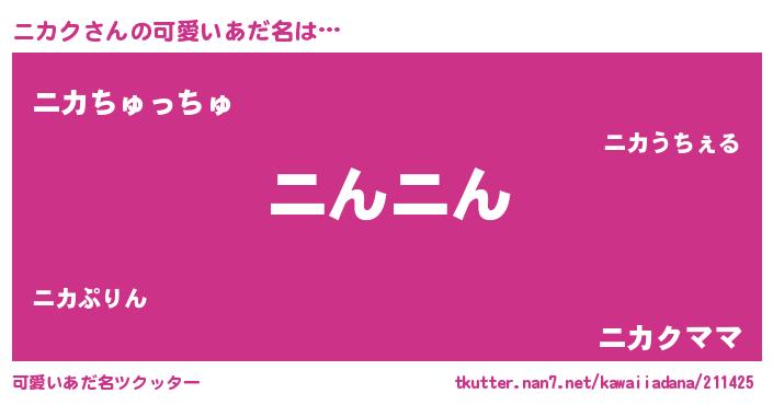 | 男性向けラノベタイトル風あだ名 | 『ニカクの憂鬱』『はたらくニカクさま!』 |