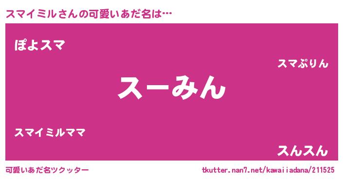 | 恥ずかしいあだ名 | 『プリティースマイミル』『スマちん』 |