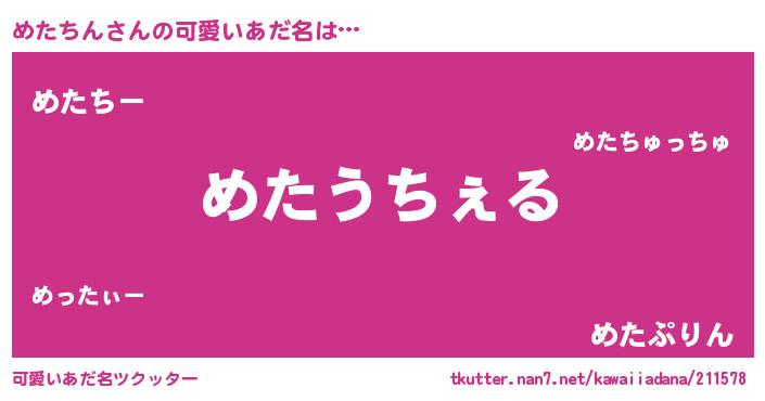 | 女子向けラノベタイトル風あだ名 | 『闇のめたちん』『めたちんの雑貨屋さん』 |
