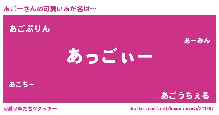 | 女子向けラノベタイトル風あだ名 | 『あごーは平凡を望む』 |