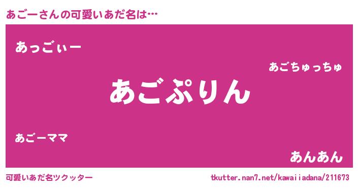 | ピコ太郎風あだ名 | 『アゴ二郎』『アコ八郎』『アア太郎』 |