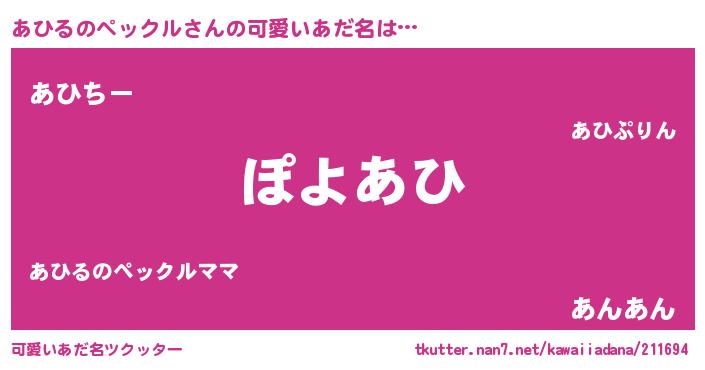 | 意味不明あだ名 | 『住所不定無職あひるのペックル(65歳)』 |