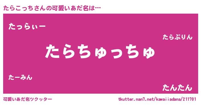 | ヒーロー風カッコイイあだ名 | 『天空の使者たらこっち』『黄金騎士タラ』 |