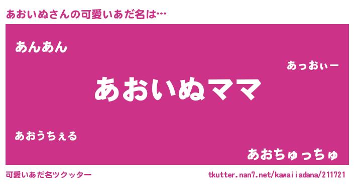 | 意味不明あだ名 | 『永久保存あおいぬ』『ペロリンあおいぬ』 |