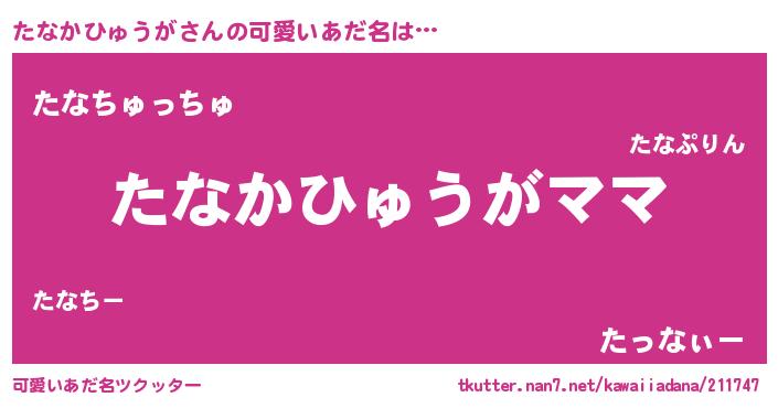 | ヘコむあだ名 | 『たなかひゅうが(爆)』『たなぷりん』 |