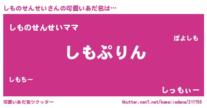 | ヘコむあだ名 | 『しものせんせい(笑)』『しもっぺ』 |